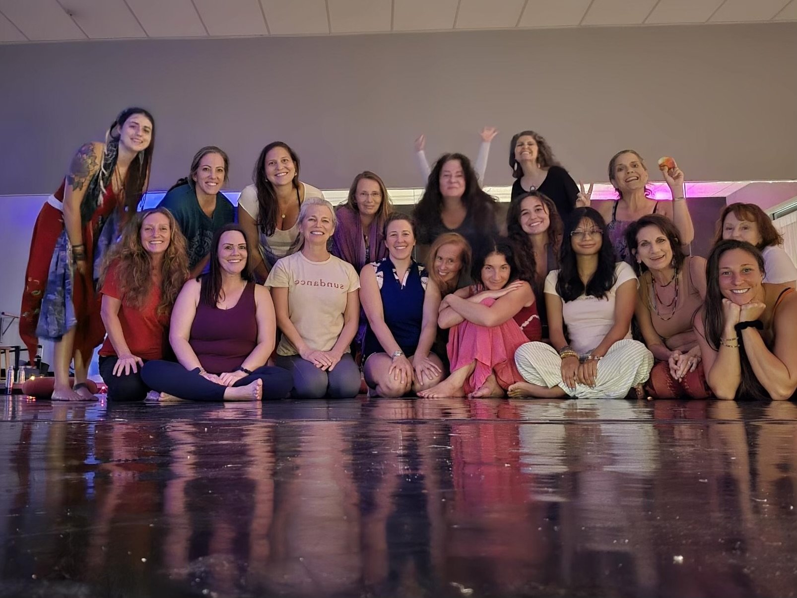 Monthly online workshops, monthly women only red tent ecstatic dances, and monthly full moon silent disco at sunset dances.